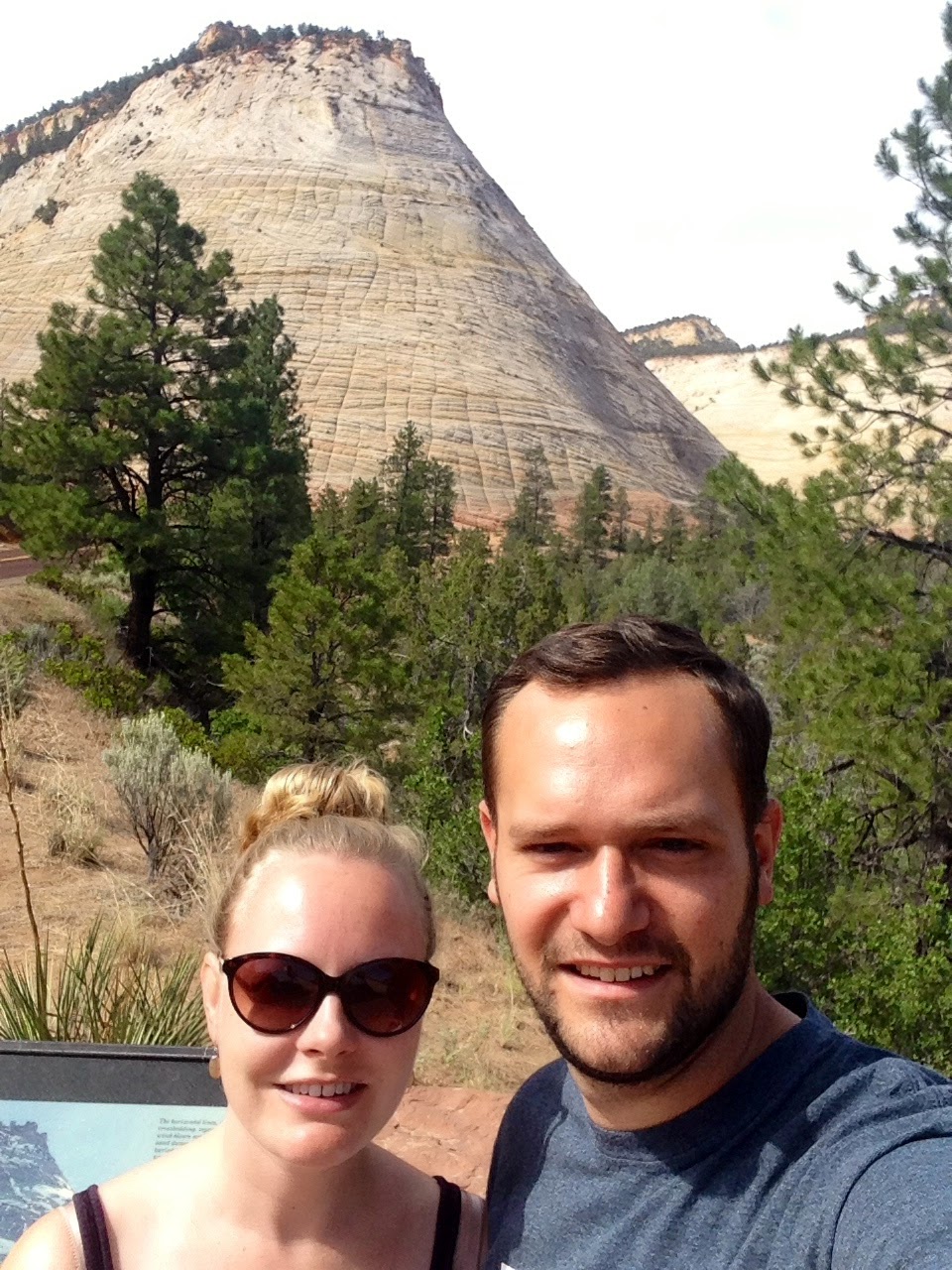 Zion was amazing - a favorite for both of us! We arrived in the morning and set up camp immediately. Our campsite had already been in the sun for a few hours, so the ground was scorching hot. For the first, and only time, we left the rain fly off.